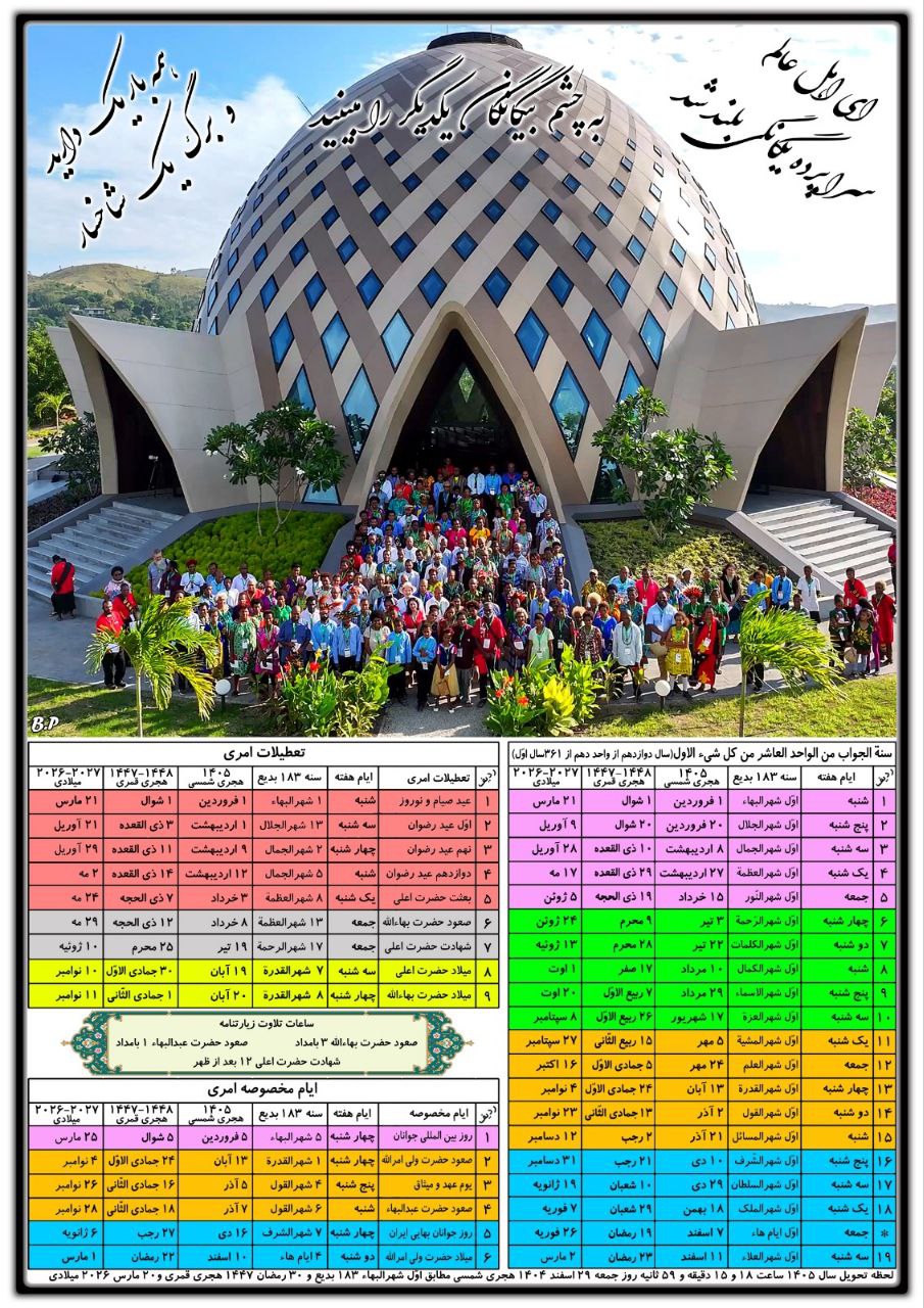تقویم بهائی ۱۸۳ بدیع مطابق با ۱۴۰۵ شمسی
